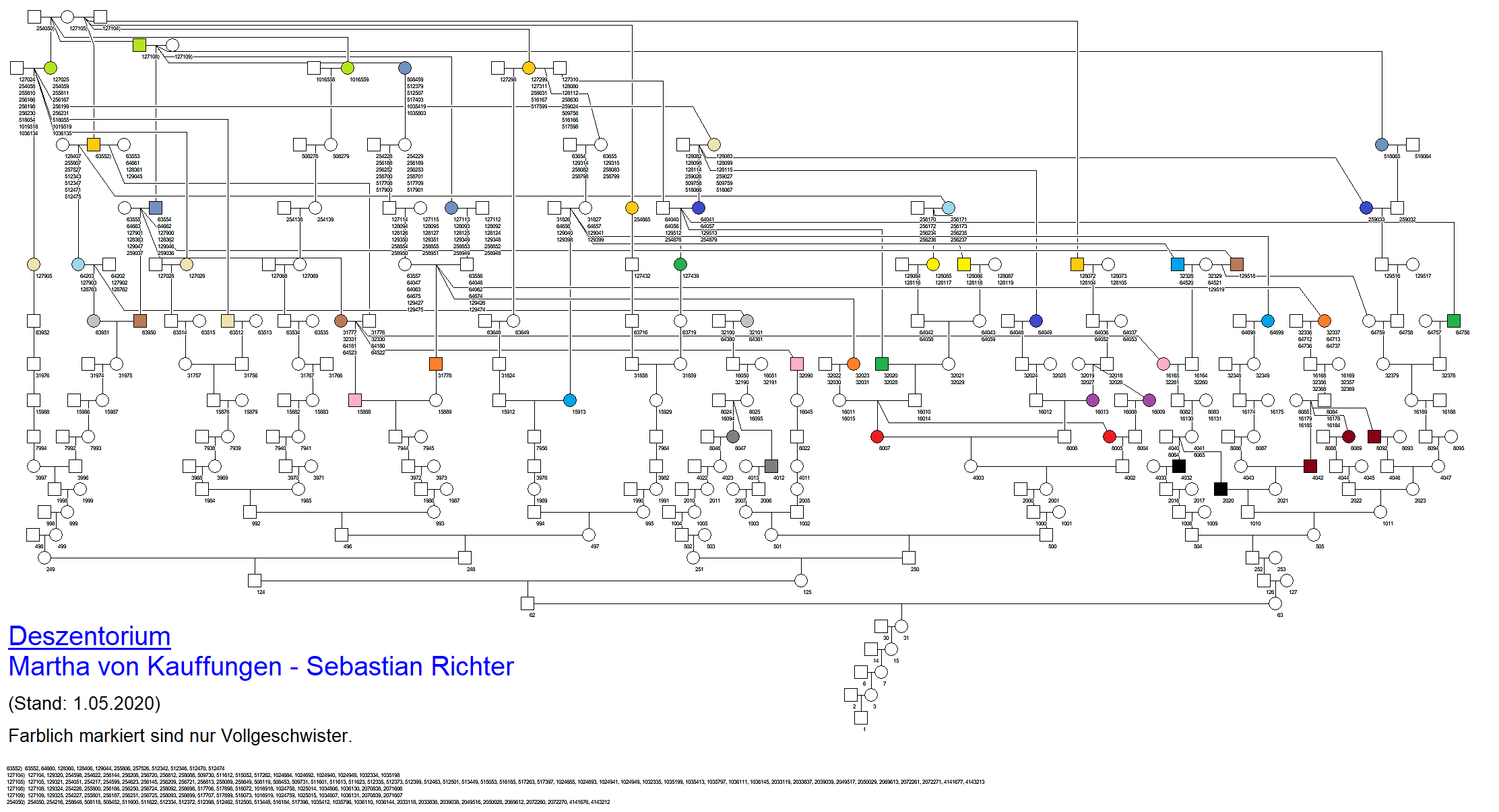 4. Grafik-Deszentorium Martha von Kauffungen - Sebastian u. Stefanie Richter, ähnlich wie unter 3., aber mit farbiger Markierung der Geschwister (jedoch ohne Namensangaben),