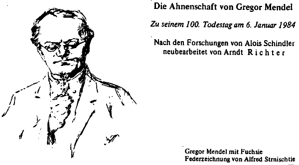 In GENEALOGIE Heft 1 und 2/1984 S. l5ff bzw. 44ff erschien ein Aufsatz von Arndt Richter über: Die Ahnenschaft von Gregor Mendel zu seinem 100. Todestag am 06.01.1984. Darin wird besonders auf den guten Erforschtheitsgrad und die vielen Verwandtenehen hingewiesen. Der Autor weist auf die Möglichkeit hin, diese Ahnenliste als Test für genealogische und nachbarwissenschaftliche Anwendungen von Computergenealogie-Programmen zu verwenden.