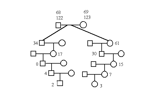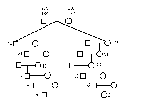 | lfd. Nr. | väterl. Ahnen-Nr | gemeinsame Ahnen | mütterl. Ahnen-Nr | gb |
